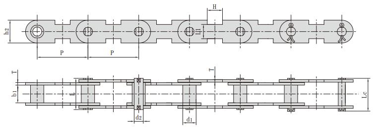 P100F49,帶附板輸送鏈,工程鏈條廠家,鏈條規格參數