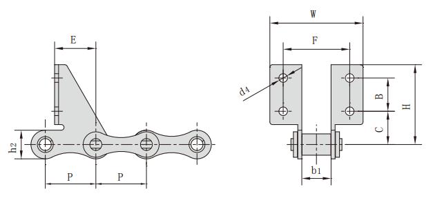 主要規格型號有:ZGS38F47(節距38mm,滾子直徑16.0mm,內節內寬22.00mm,橡膠附板尺寸W480.0mm,L360.0mm,H77.0mm,F52.0mm,Tr8.0mm)